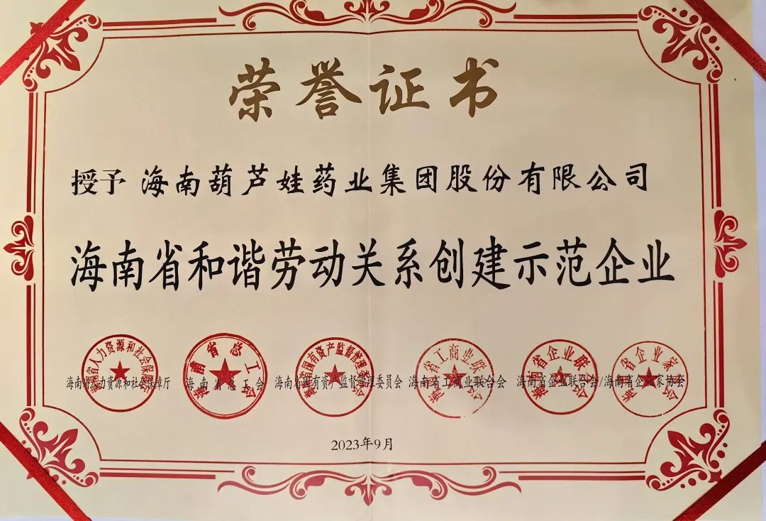 门徒娱乐药业集团获评“海南省和谐劳动关系创建示范企业”