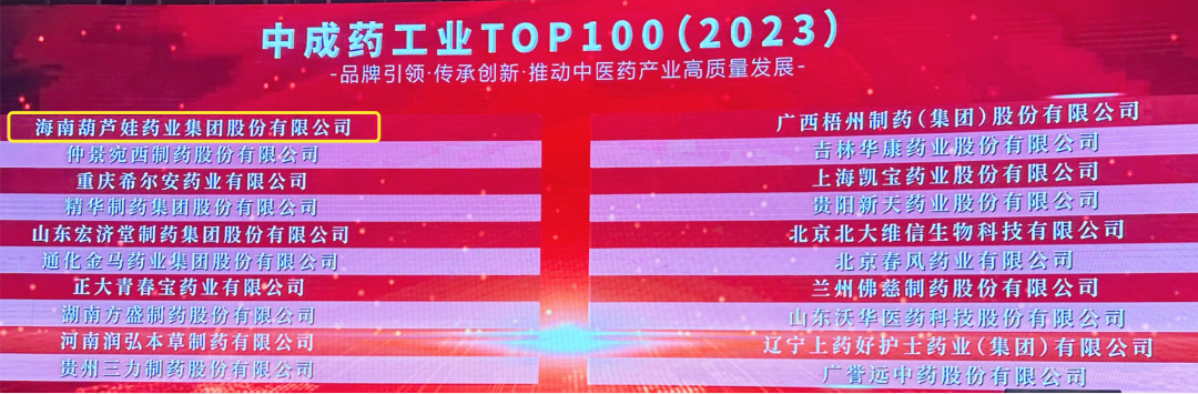 会上,还发布了“2023中成药工业TOP100”榜单,门徒娱乐药业集团荣耀上榜。